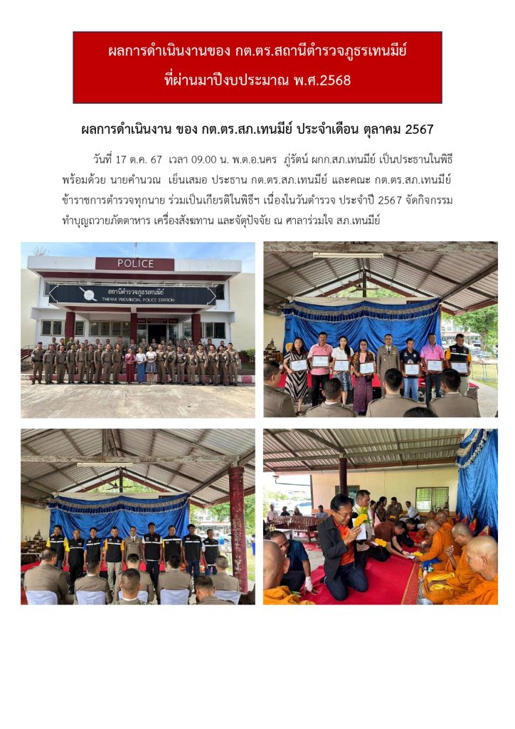 ผลการดำเนินงานของ กต.ตร. สถานีตำรวจเทนมีย์ ในเดือน ตุลาคม 2567