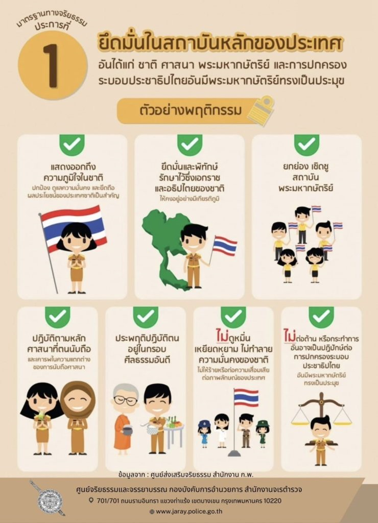 - ยึดมั่นในสถาบันหลักของประเทศ
