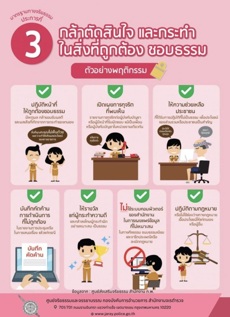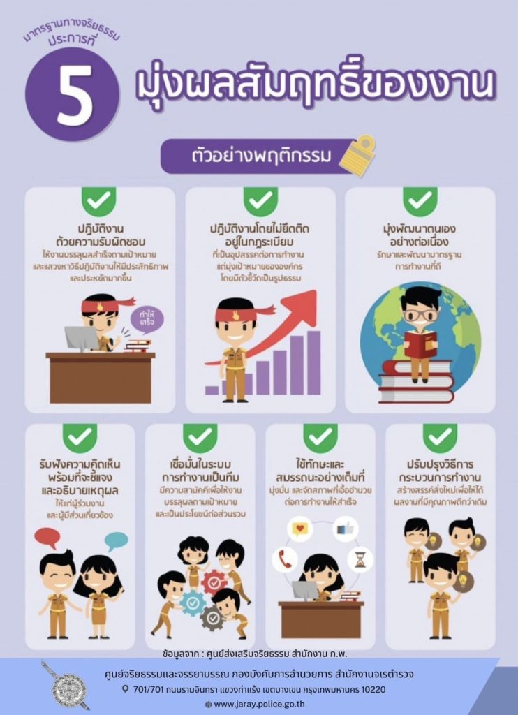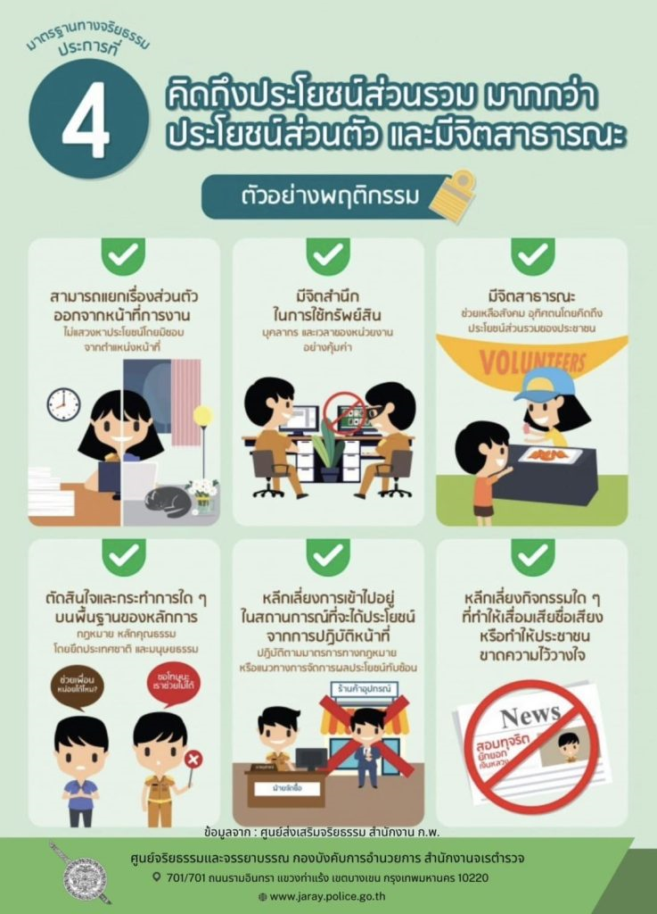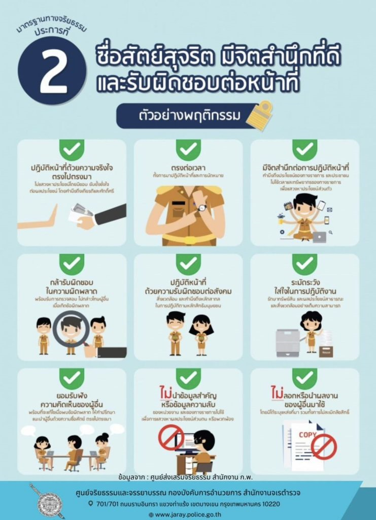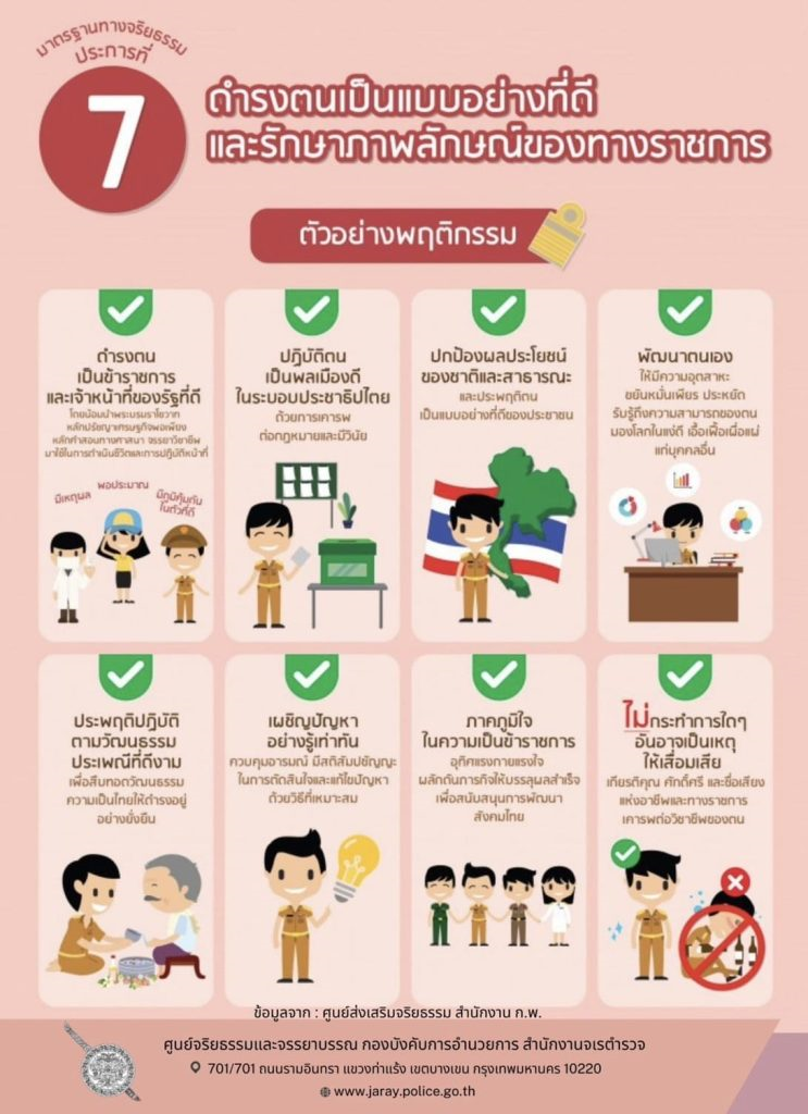 - ดำรงตนเป็นแบบอย่างที่ดีและรักษาภาพลักษณ์ของทางราชการ