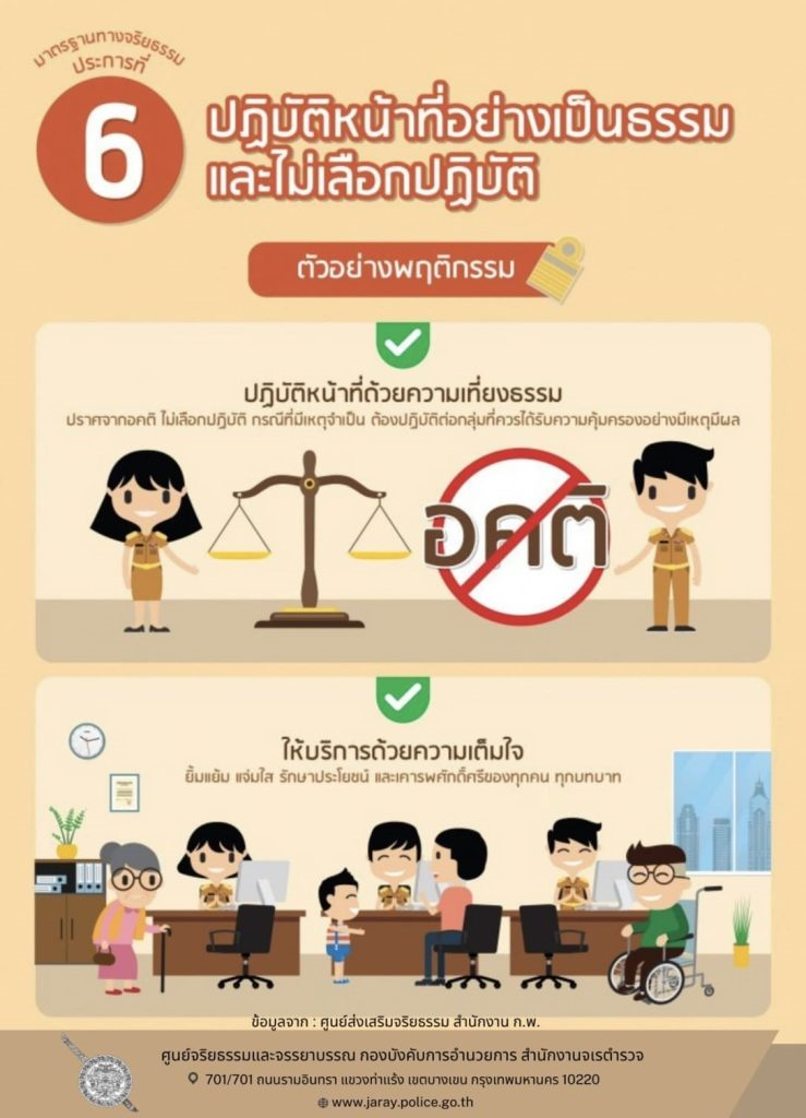 - ปฏิบัติหน้าที่อย่างเป็นธรรมและไม่เลือกปฏิบัติ