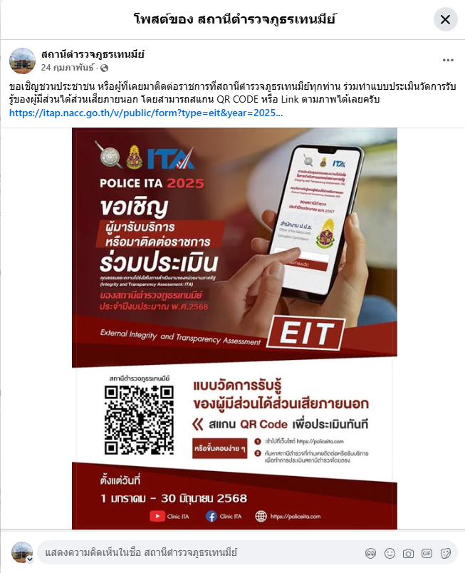 มีการประชาสัมพันธ์ข้อมูลการประเมินคุณธรรมและความโปร่งใสในการดำเนินงานของหน่วยงานของภาครัฐฯ ประจำปีงบประมาณ พ.ศ.2568
